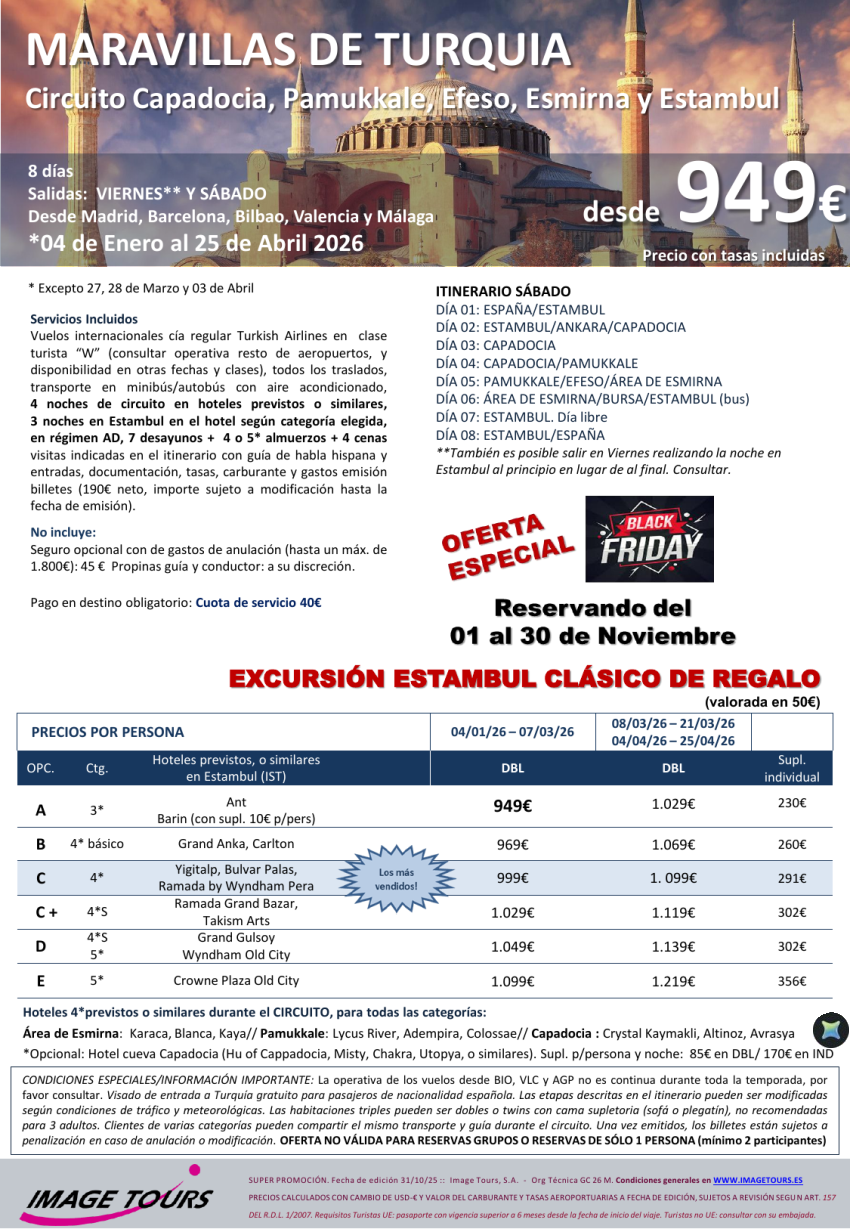Turquía* BLACK FRIDAY* circuito 7 noches con todas las visitas, PC y excursión en Estambul desde 949€